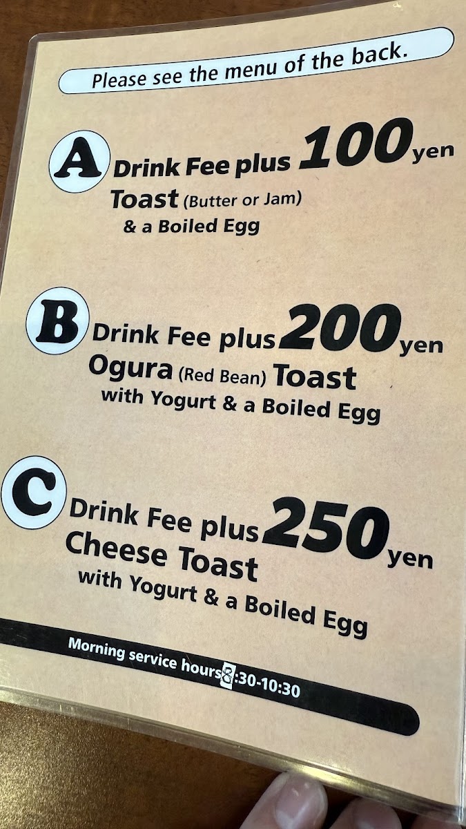 For a more substantial meal, the ミックスサンド (Mixed Sandwich) and たまごサンドイッチ (Egg Sandwich) are perfect options for a light yet satisfying bite. The 小倉トーストセット (Ogura Toast Set) is another popular choice, offering a delicious combination of toasted bread and sweet red bean paste. If you're in the mood for something sweet, try the エクレア (Eclair) or a プチケーキ (Petit Cake) for a light dessert.